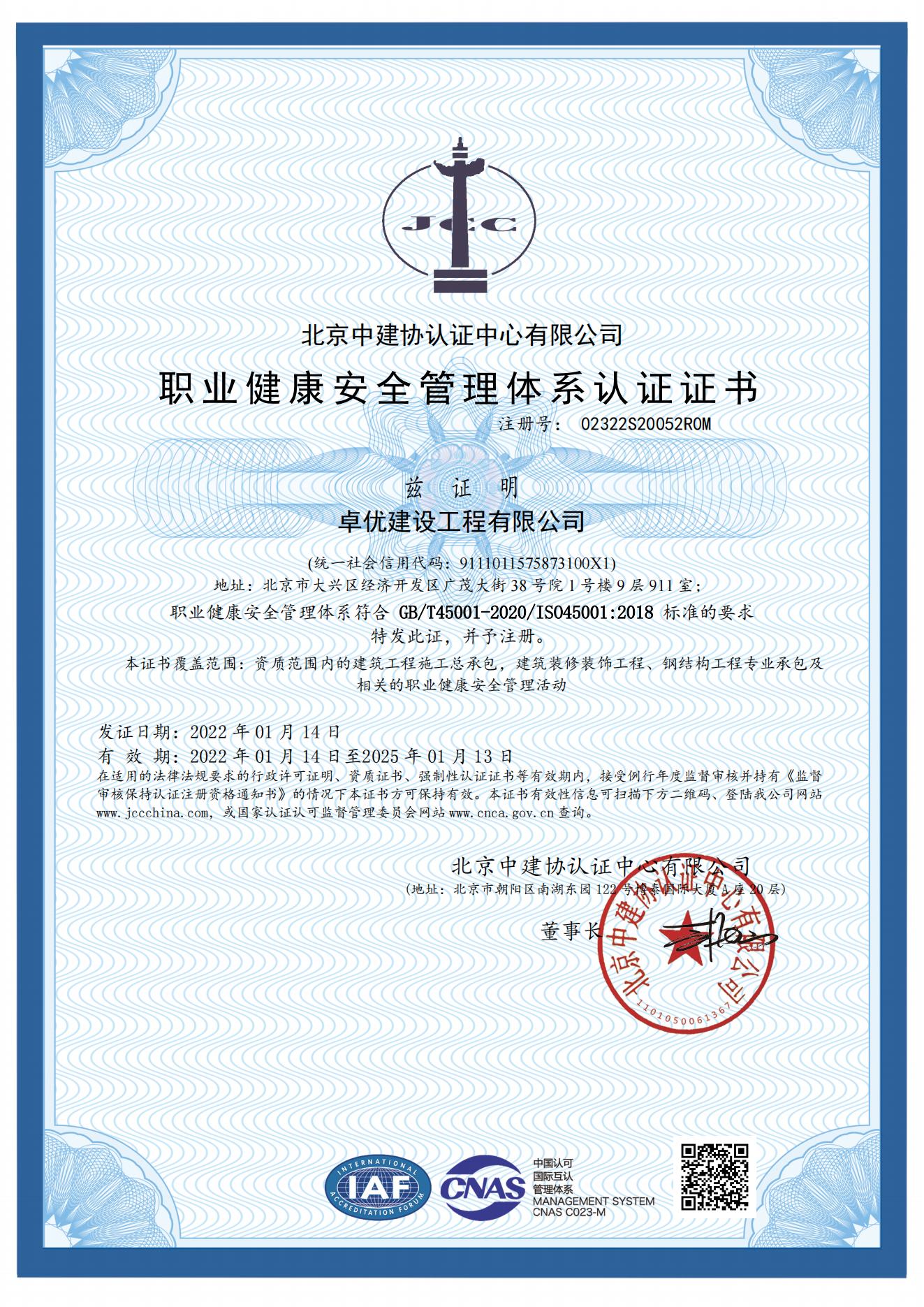 建筑施工总承包贰级、石油化工工程施工总承包叁级、机电工程施工总承包叁级、建筑装修装饰工程专业承包贰级、钢结构工程专业承包叁级,地基基础工程专业承包叁级、电子智能化工程专业承包贰级、消防设施工程专业承包贰级、防水防腐保温工程专业承包贰级、建筑机电安装工程专业承包叁级、建筑幕墙工程专业承包贰级、古建筑工程专业承包叁级、环保工程专业承包资质叁级、特种(补强)工程专业承包不分等级、模板脚手架专业承包不分等级、施工劳务不分等级、招标代理、造价咨询乙级等。