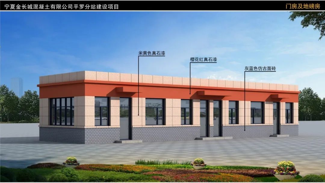 宁夏金长城混凝土有限公司平罗分站改建项目总投资约7000000万,总建筑面积约3300平方米,建设地点位于平罗工业园区太西园,工程承包范围包括综合楼、门房及地磅房、集中控制室等。