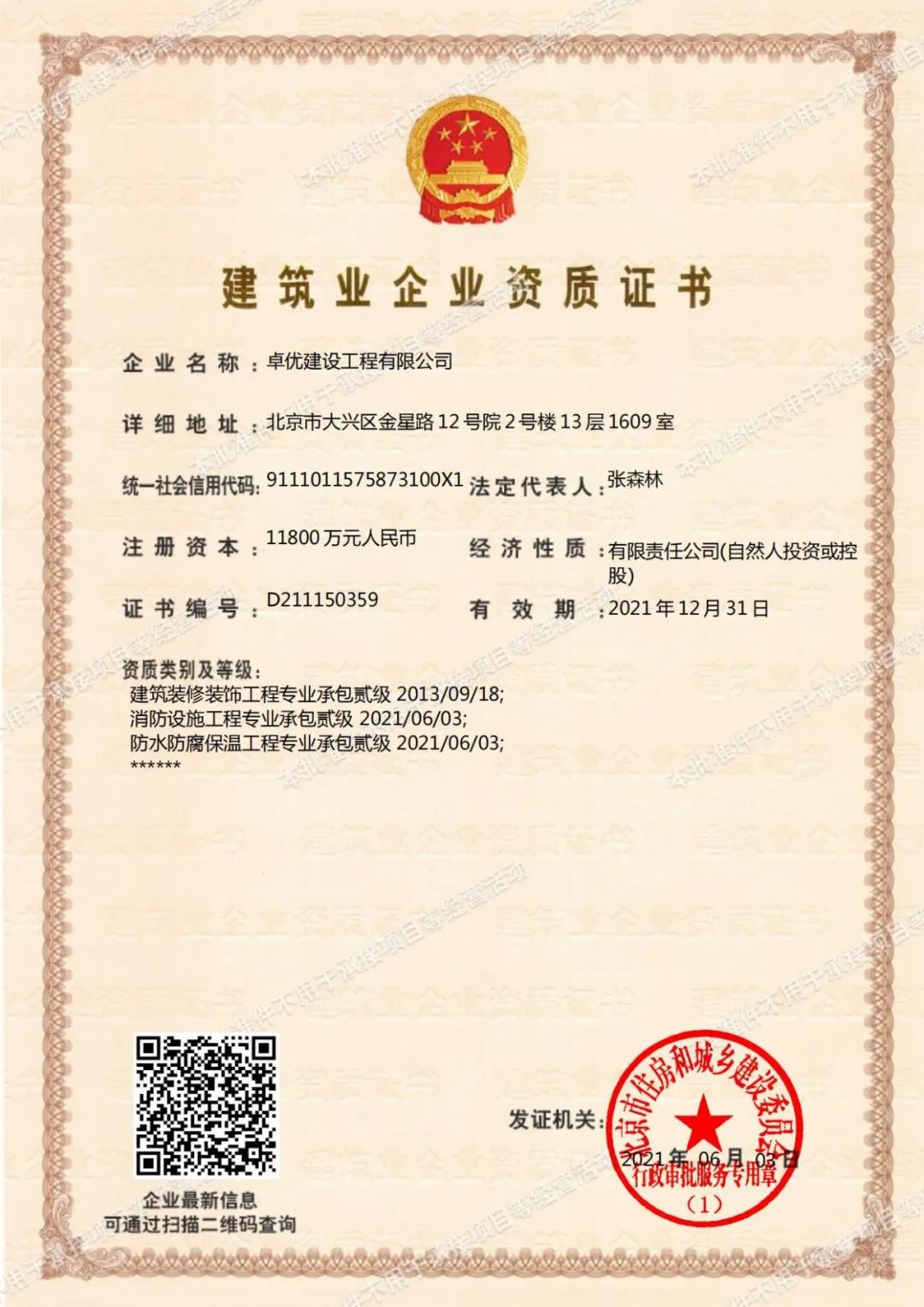北京星空体育官网公司,注册资金1.88 亿元,集团取得资质: